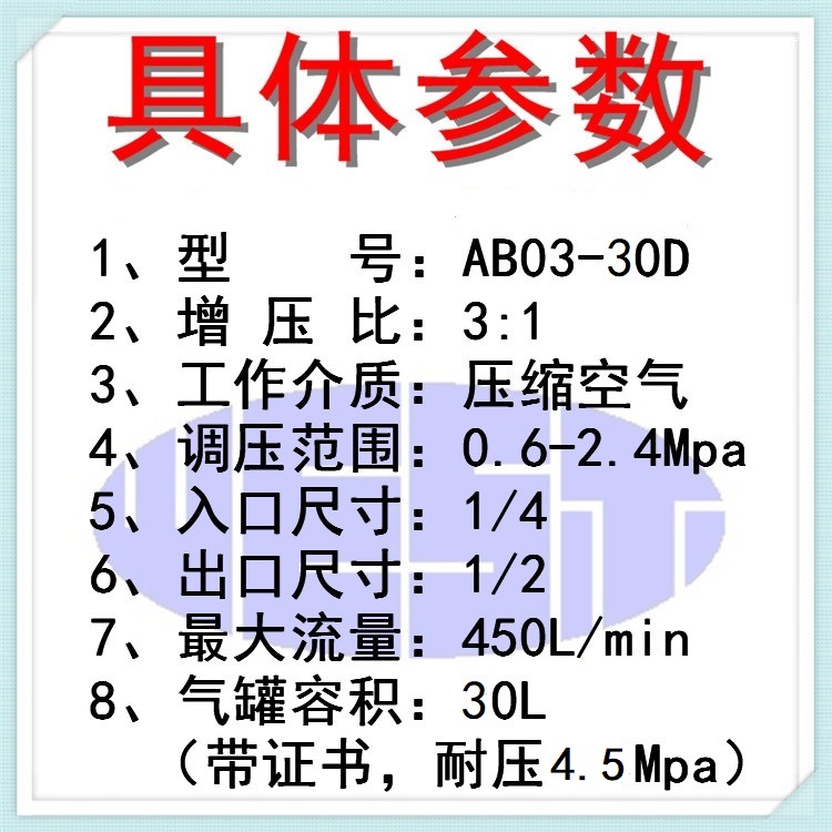8、氣罐容積:30L(帶證書(shū)耐壓4.5Mpa)